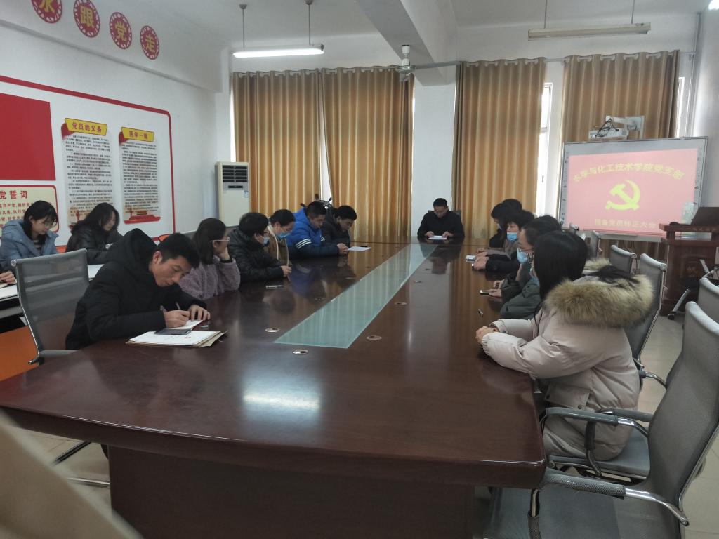 2020年12月16日,农学与化工技术学院党支部在党员活动室召开12月支部生活日,会议由党支部副书记李建永同志主持。首先召开预备党员转正会议,与会正式党员一致同意孙超同志按期转为中共正式党员。
