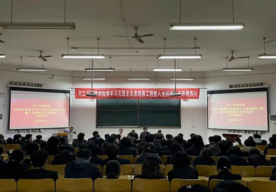 为深入学习贯彻党的先进理论,切实加强青年学生的政治引领与思想锻造,11月19日,化工与环境学院党总支组织开展2025年度青年马克思主义者培养工程暨入党积极分子培训班开班典礼活动。化工与环境学院党总支书记李法鹏、党总支副书记尹波、团总支书记魏庆云、党建组织员王鑫、第二十四届志愿服务队骨干、全体入党积极分子及学生代表共同参加活动。尹波主持活动。