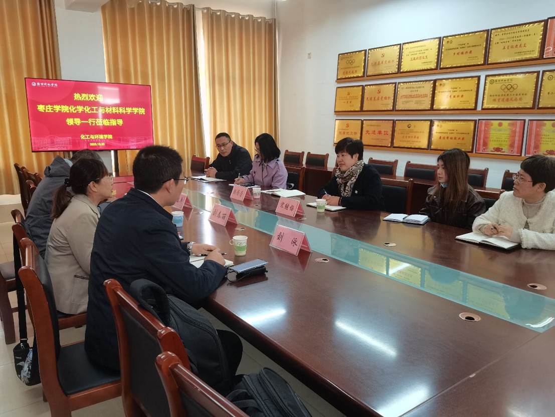 10月20日上午,枣庄学院化学化工与材料科学学院党委书记谭胜兵、院长刘春丽、副院长刘泳一行3人来我校化工与环境学院,围绕专业设置、学科建设、人才引进、申硕工作、平台建设及校企合作等议题展开深度交流,重点探讨申硕工作推进路径。化工与环境学院院长宋继梅、副院长刘芳芳及各系主任参加活动。