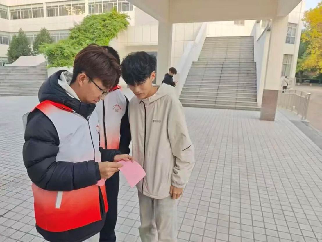 志愿者向同学发放安全宣传手册。手册内容丰富、条理清晰,涵盖各类安全常识、应急处置流程等实用信息,便于同学们随时查阅学习,将安全知识内化于心、外化于行。