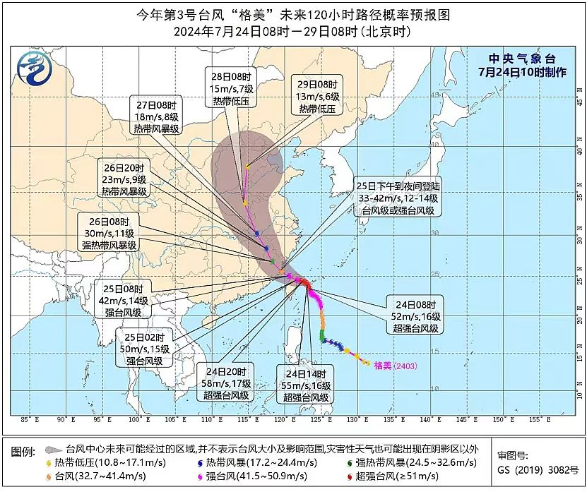 “格美”是2024年太平洋台风季的第3号台风,由韩国命名,原义为“一种非常细小、高度群居生活的蚂蚁”。它于7月20日生成,7月24日加强为超强台风,并于7月25日19时50分前后在福建秀屿到连江一带沿海登陆。登陆后继续向北移动,给我国多地带来了狂风和暴雨天气。