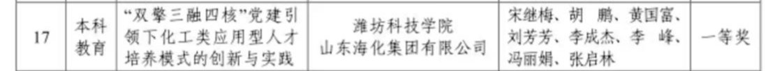在教学成果奖(高等教育类)评选中,学校联合山东海化集团有限公司完成的《“双擎三融四核”党建引领下化工类应用型人才培养模式的创新与实践》项目,凭借“党建引领+产教融合”的协同育人体系,脱颖而出获评一等奖。该成果聚焦新工科背景下化工专业人才培养痛点,构建“师生共融”的实践教学体系,为应用型人才培养提供了可推广的范式。